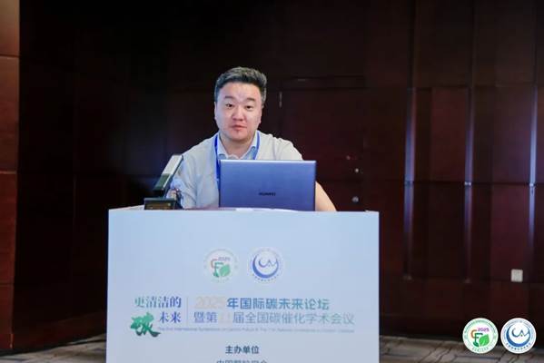 在学术交流环节,我院师生积极参与,充分体现了学院在碳催化领域的科研实力。在 “绿色低碳催化” 分会场,宫建茹教授作题为《石墨烯基异质结构光解水制氢》的报告,深入探讨了石墨烯材料在光催化制氢领域的应用潜力;郝海刚副教授作了题为《1,3-丁二烯选择性加氢反应非贵金属催化剂理论设计与验证》,为煤制烯烃技术迭代提供了创新思路;万丽丽博士围绕《光/电催化CO₂资源化转化》分享了最新研究成果,为碳减排技术提供了新思路。此外,学院研究生团队的多项研究成果以墙报形式展示,其中《高斯曲率工程优化自增压纳米反应器分子吸附 - 解吸行为》《介孔CuS级联纳米反应器晶面工程以增强CO₂到C₂H₄光催化C-C偶联》等研究,聚焦碳材料的结构设计与催化性能调控,引发了与会专家的广泛关注。博士研究生崔林霞的墙报《Ni基催化剂对1,3-丁二烯选择性加氢性能的实验与理论研究》获评优秀墙报,彰显了学院研究生的科研创新能力。